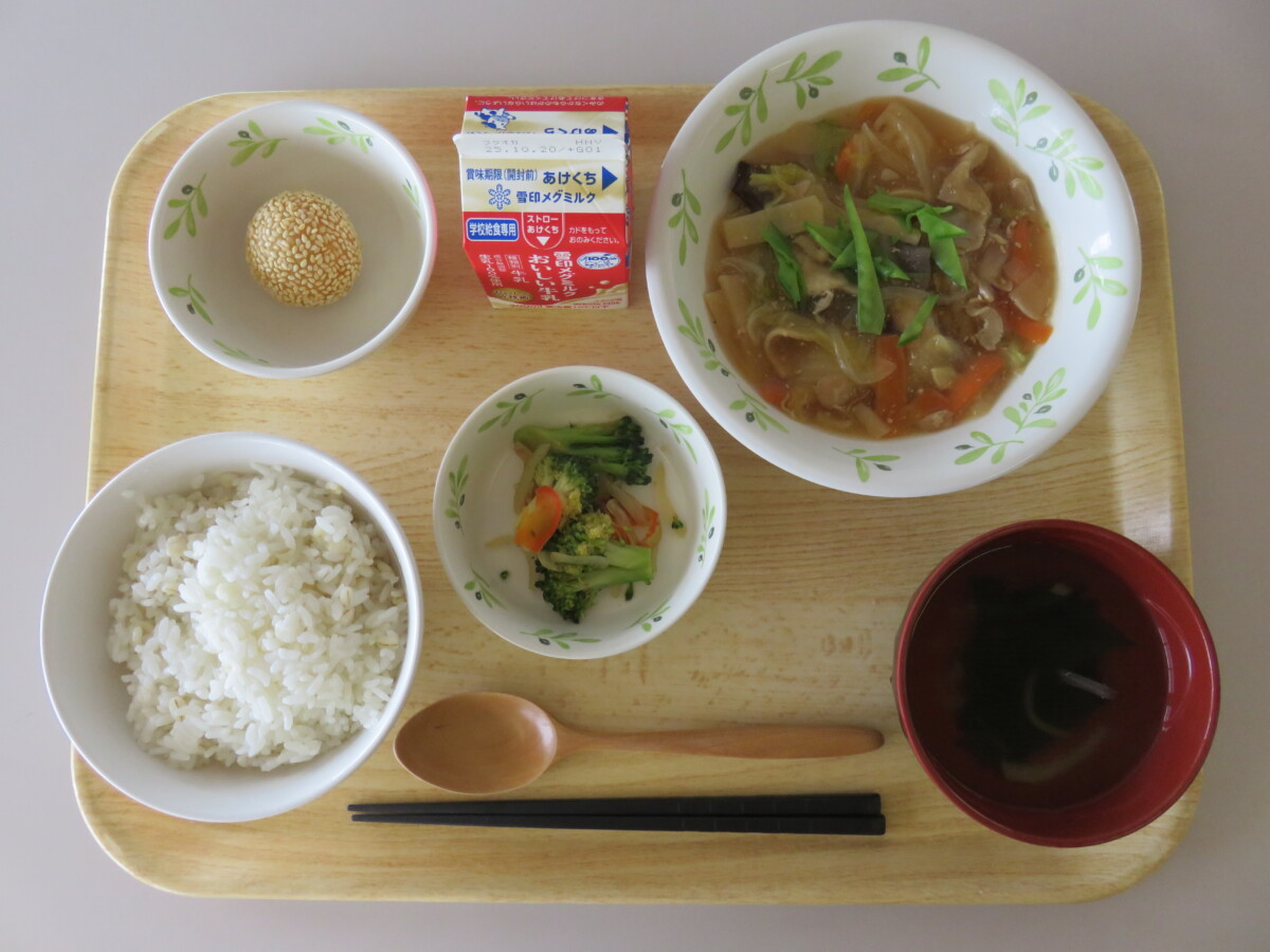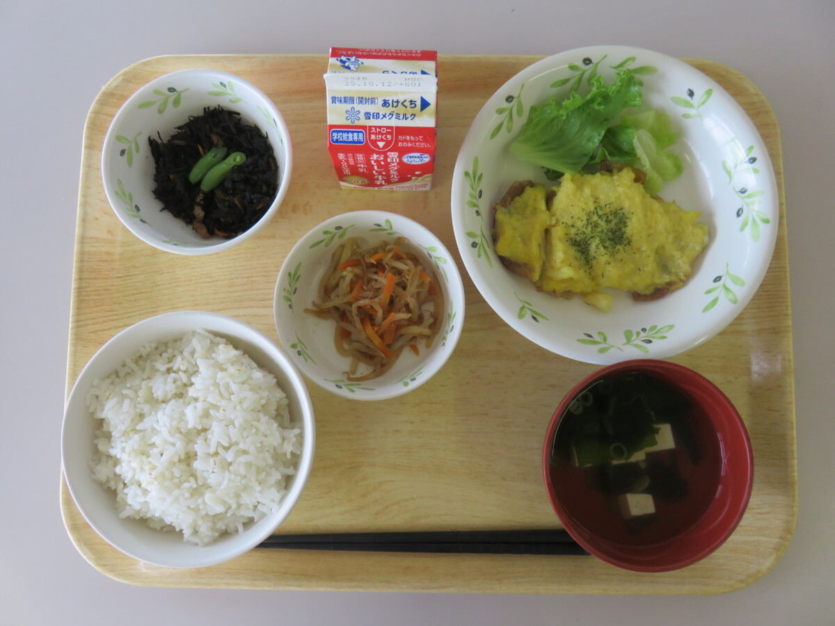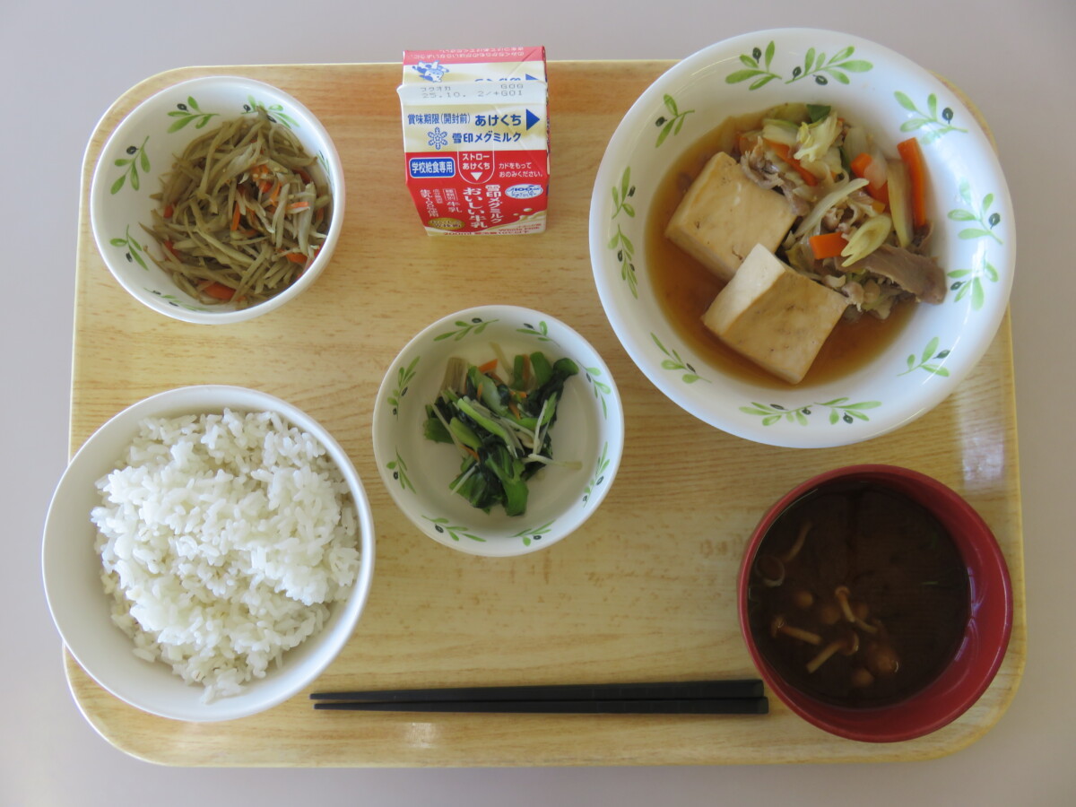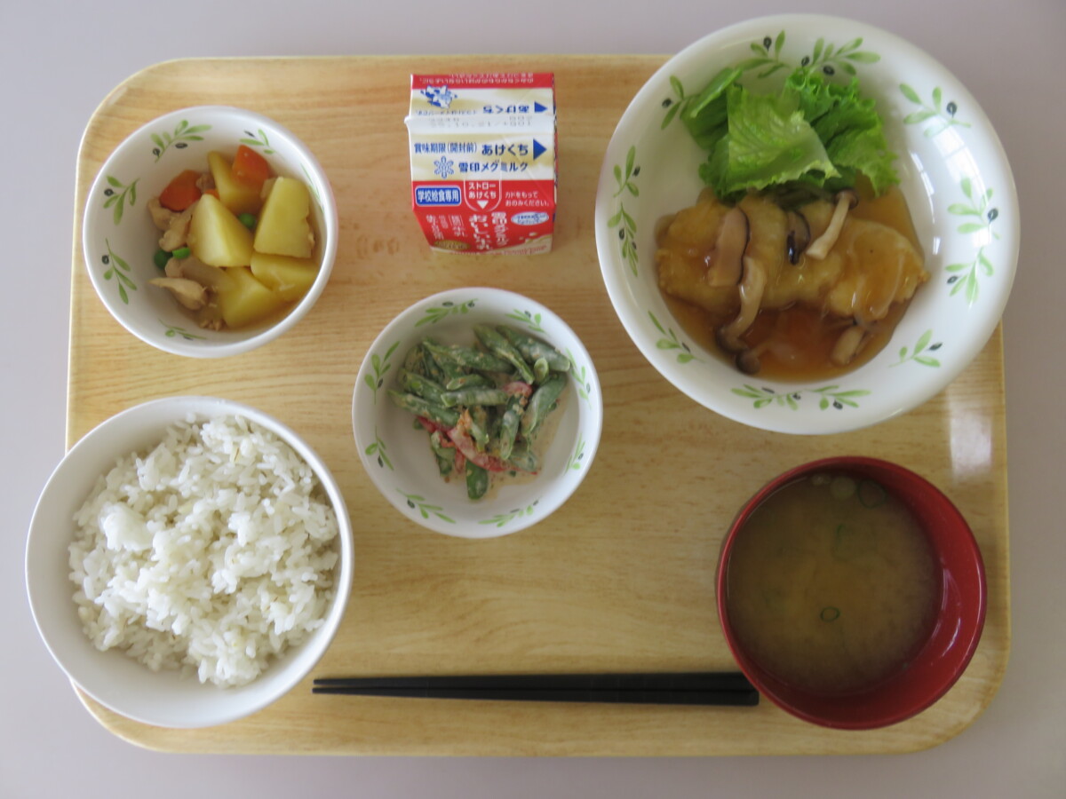 伝統的な和食の基本形「一汁三菜(ご飯・汁物・主菜・副菜・副々菜)給食」を実施しています。発育期の男子に必要な栄養をバランスよく摂取でき、丈夫な体を作ります。また、食べることの意味やマナー、団らんの大切さについて学びます。