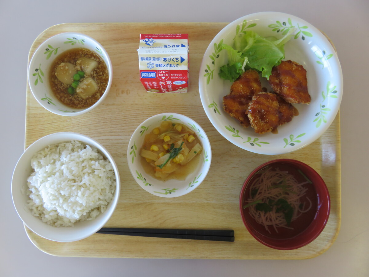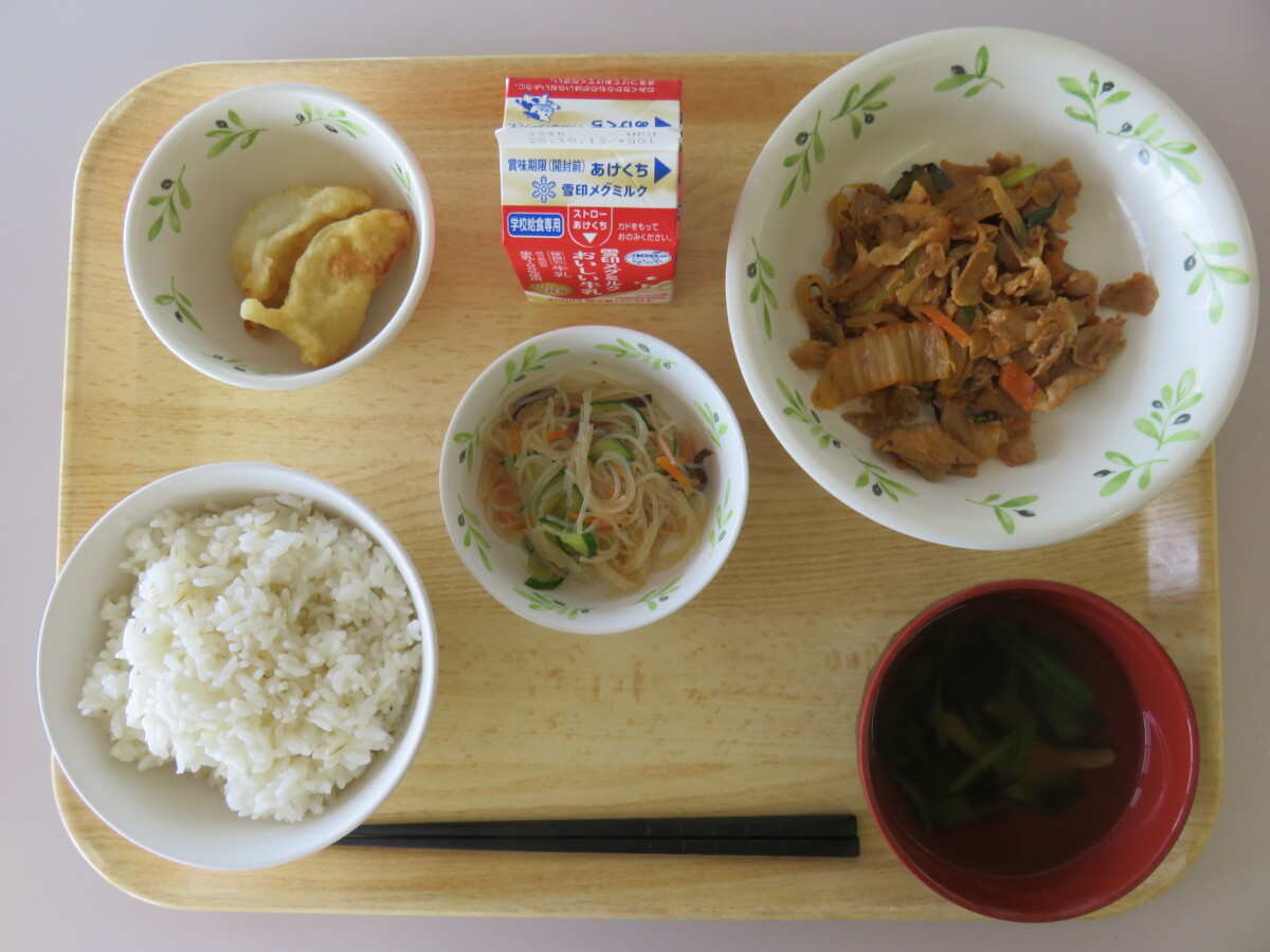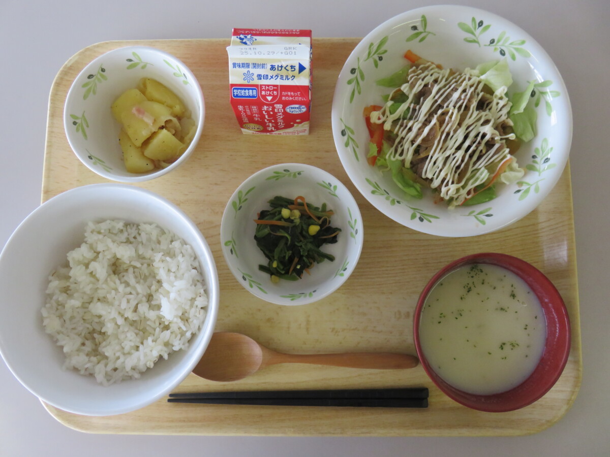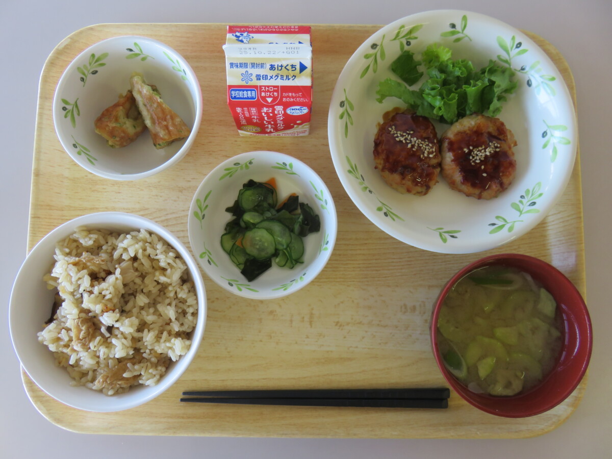 伝統的な和食の基本形「一汁三菜(ご飯・汁物・主菜・副菜・副々菜)給食」を実施しています。発育期の男子に必要な栄養をバランスよく摂取でき、丈夫な体を作ります。また、食べることの意味やマナー、団らんの大切さについて学びます。