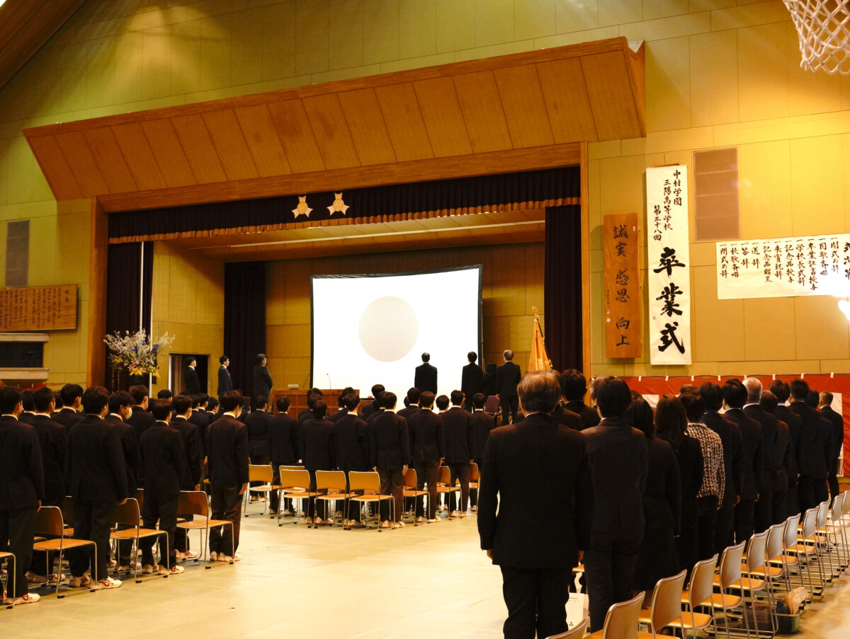 在校生や保護者の見守る中、合計81名の生徒たちが、中村学園三陽高等学校を卒業しました。